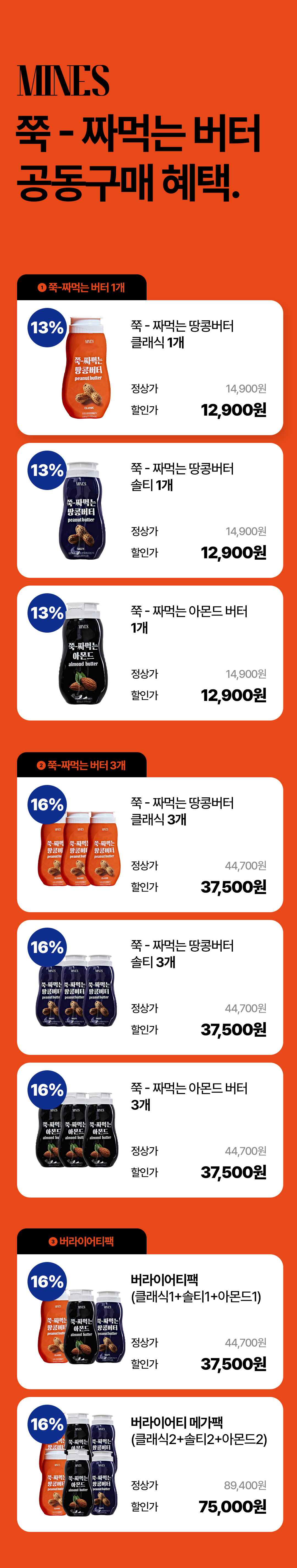 (땅콩버터 클래식, 땅콩버터 솔티, 아몬드버터)